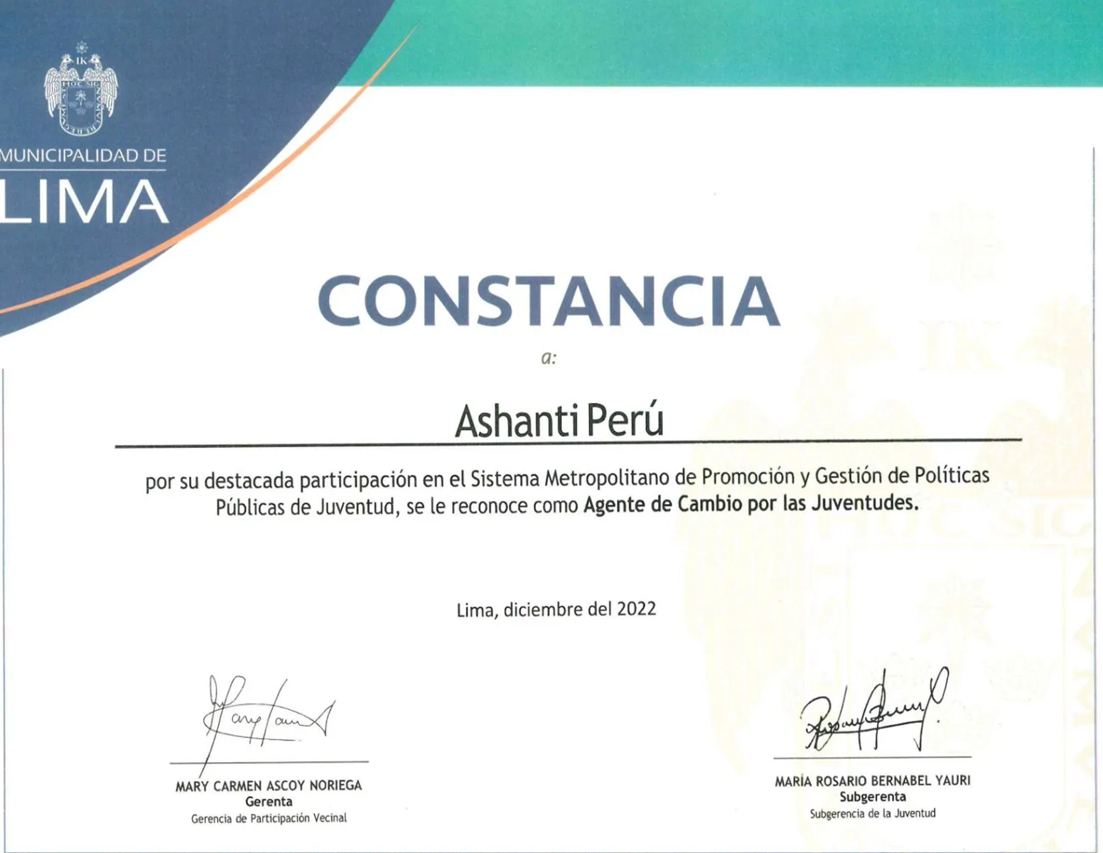 Ashanti Perú ha sido un socio proactivo en las iniciativas y campañas encaminadas a promover el empoderamiento juvenil y la lucha contra la desigualdad y discriminación juvenil, posicionando siempre la necesidad de visibilizar la diversidad de juventudes, pero también la diversidad de realidades y discriminación que a menudo enfrentan las y los jóvenes de la región.